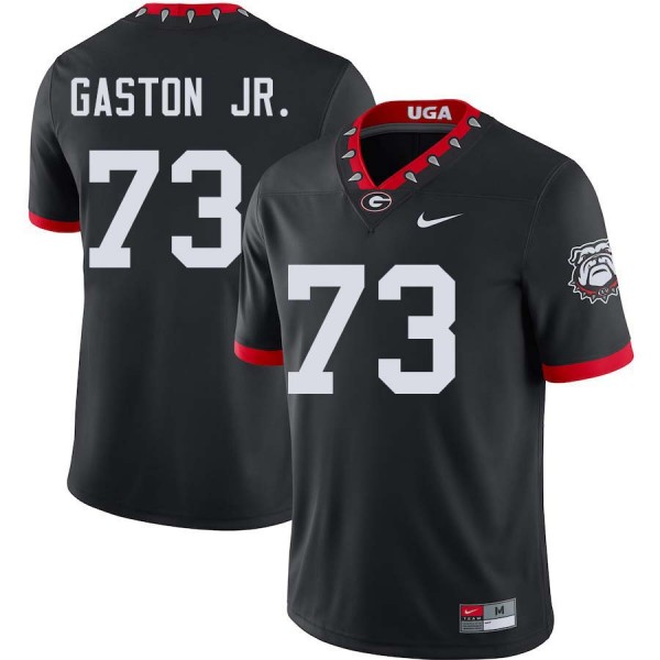 • Mens Juan Gaston 100th Anniversary Black Georgia Bulldogs #73 College Football Embroidery Jersey