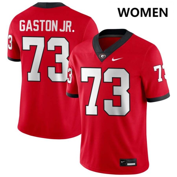 Women Juan Gaston Red Georgia Bulldogs #73 College Football Replica Jerseys 209700-309