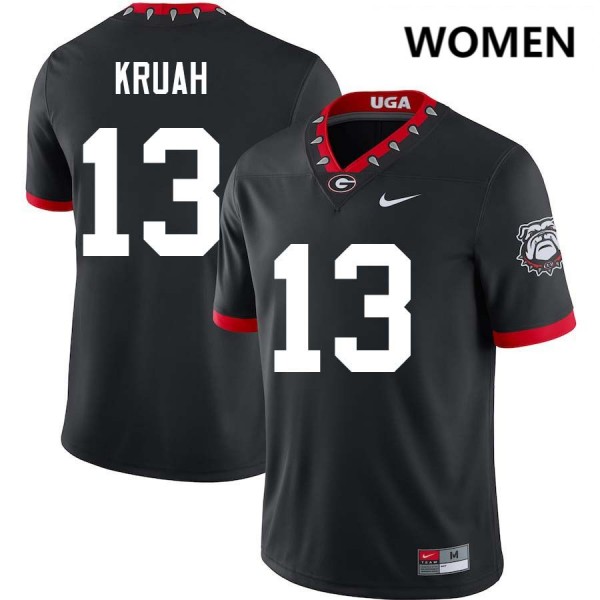 • Womens AJ Kruah 100th Anniversary Black Georgia Bulldogs #13 College Football Embroidery Jerseys