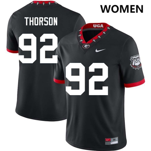 • Womens Brett Thorson 100th Anniversary Black Georgia Bulldogs #92 College Football Game Jersey