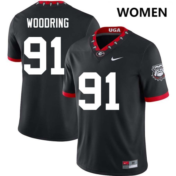 Womens Peyton Woodring 100th Anniversary Black Georgia Bulldogs #91 College Football Player Jerseys 511564-483